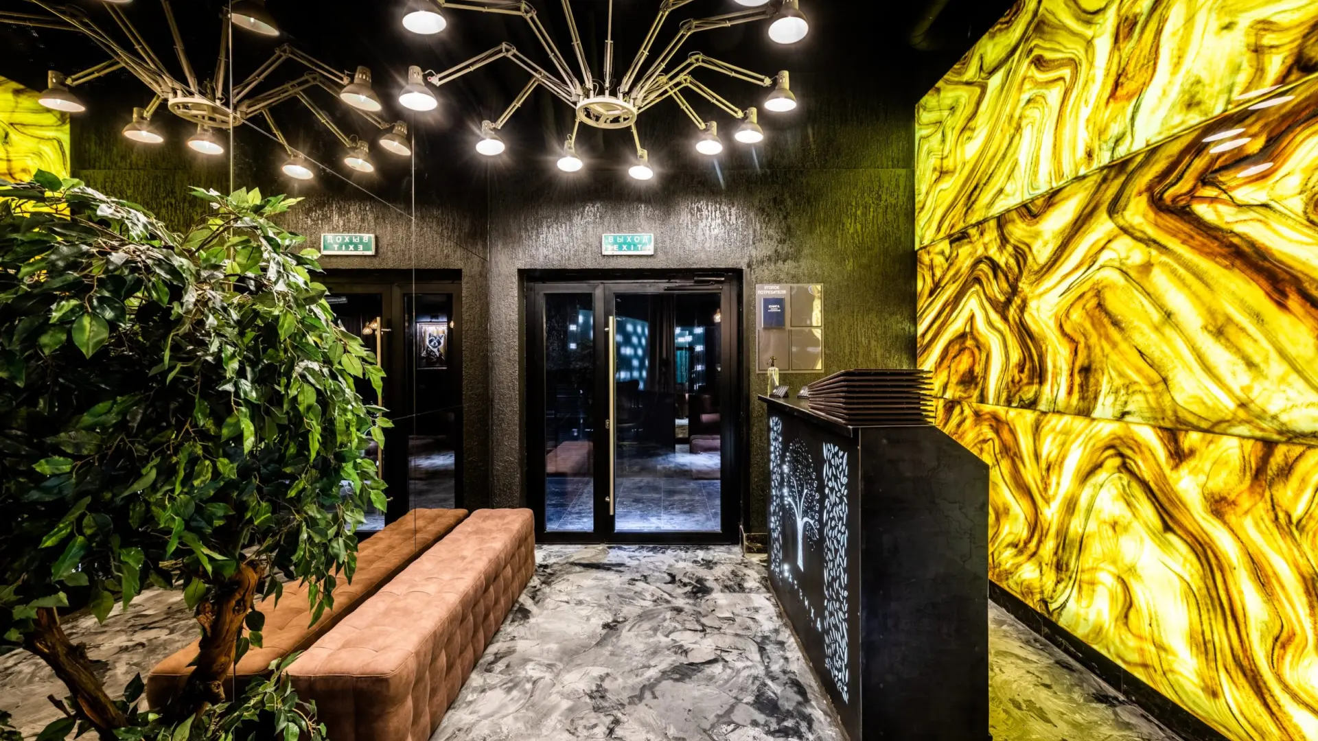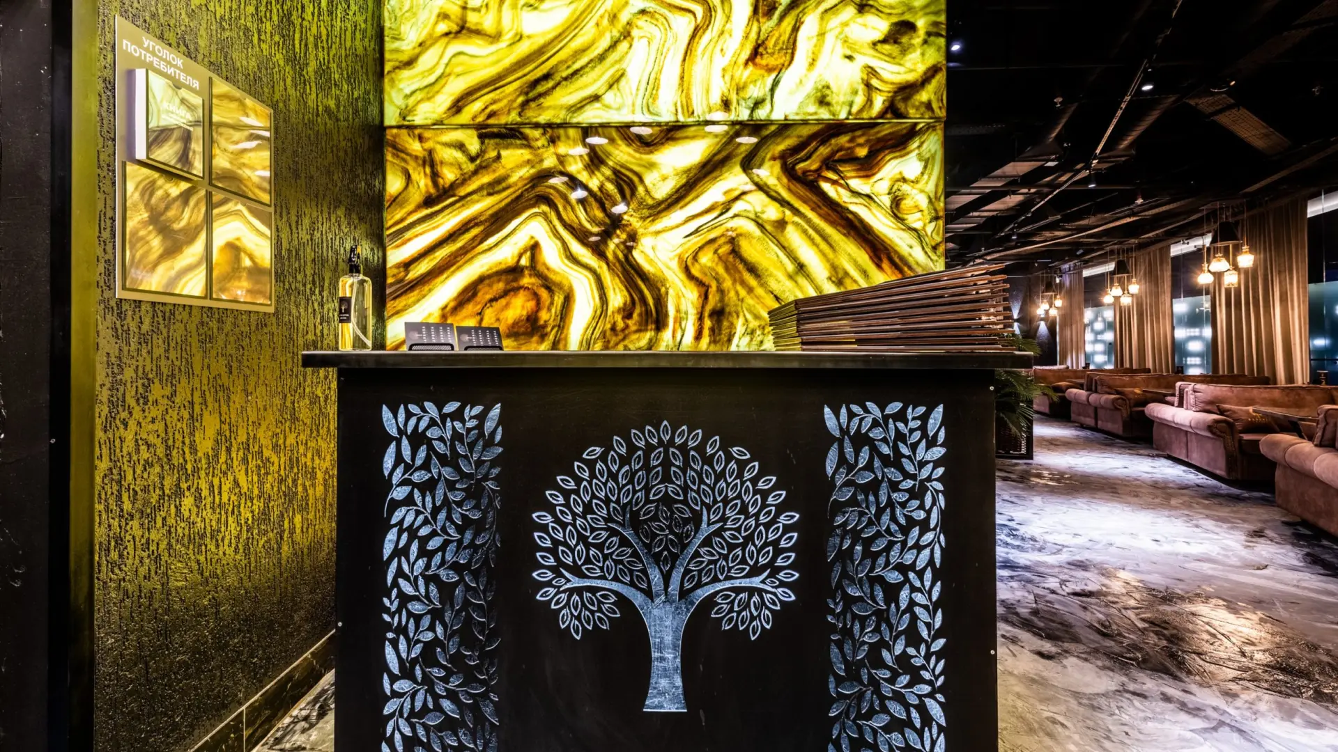 Главный зал имеет отличительные элементы именно наших кальянных клубов, такие как мраморная фотозона, авторская мебель и прекрасные картины, полюбившиеся гостям. Для проведения мероприятий сконструирована сцена. Живой звук – изюминка кальянной рядом с метро Деловой центр.