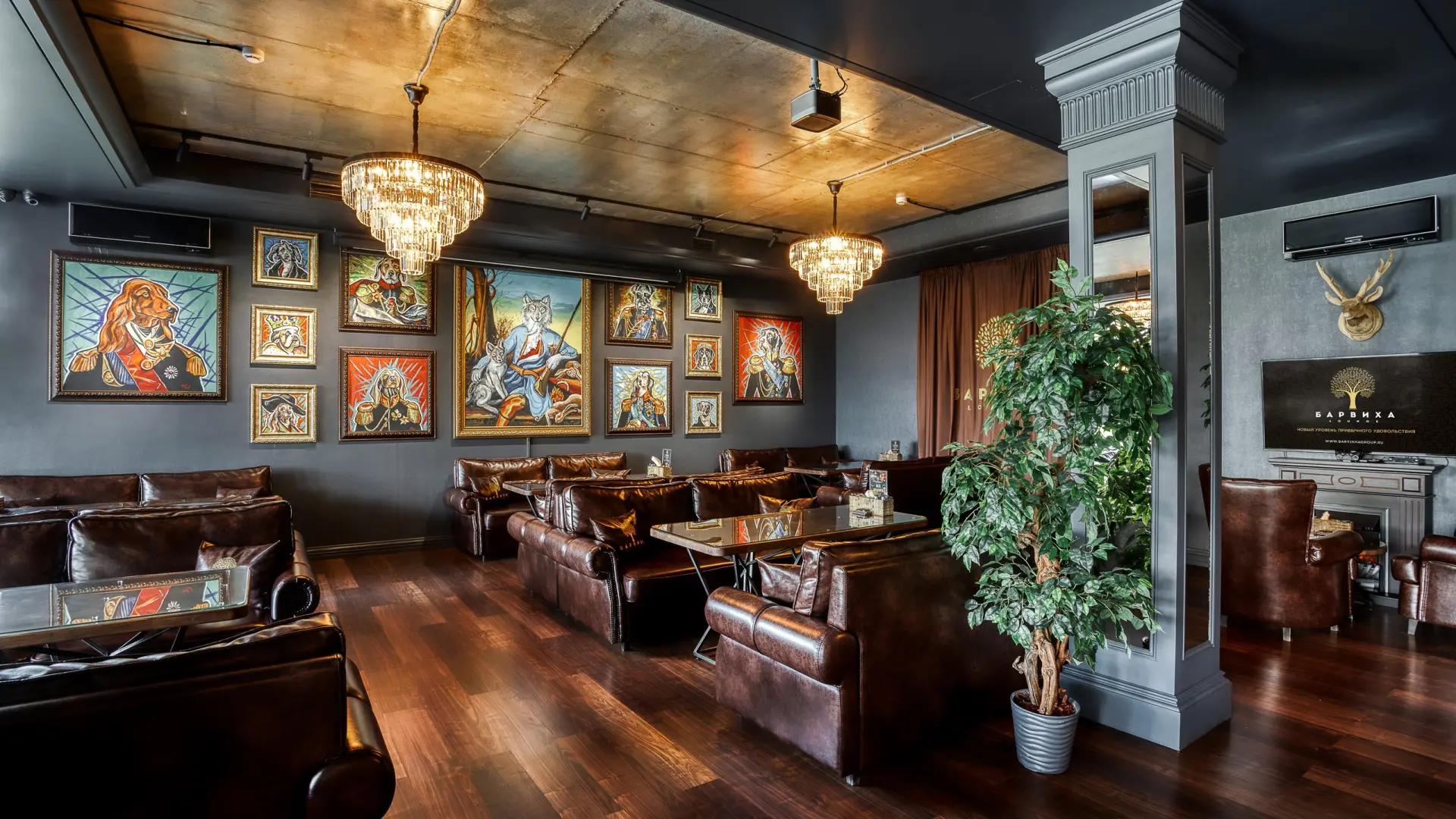 Оказавшись в лаунж баре, вы одновременно попадёте в картинную галерею – известный московский художник специально для нас создал более 20 шедевров. В заведении установлен огромный проектор для трансляции самых важных спортивных матчей и других главных событий страны, есть уютная зона с игровой приставкой PS, множество настольных игр для весёлого времяпрепровождения.