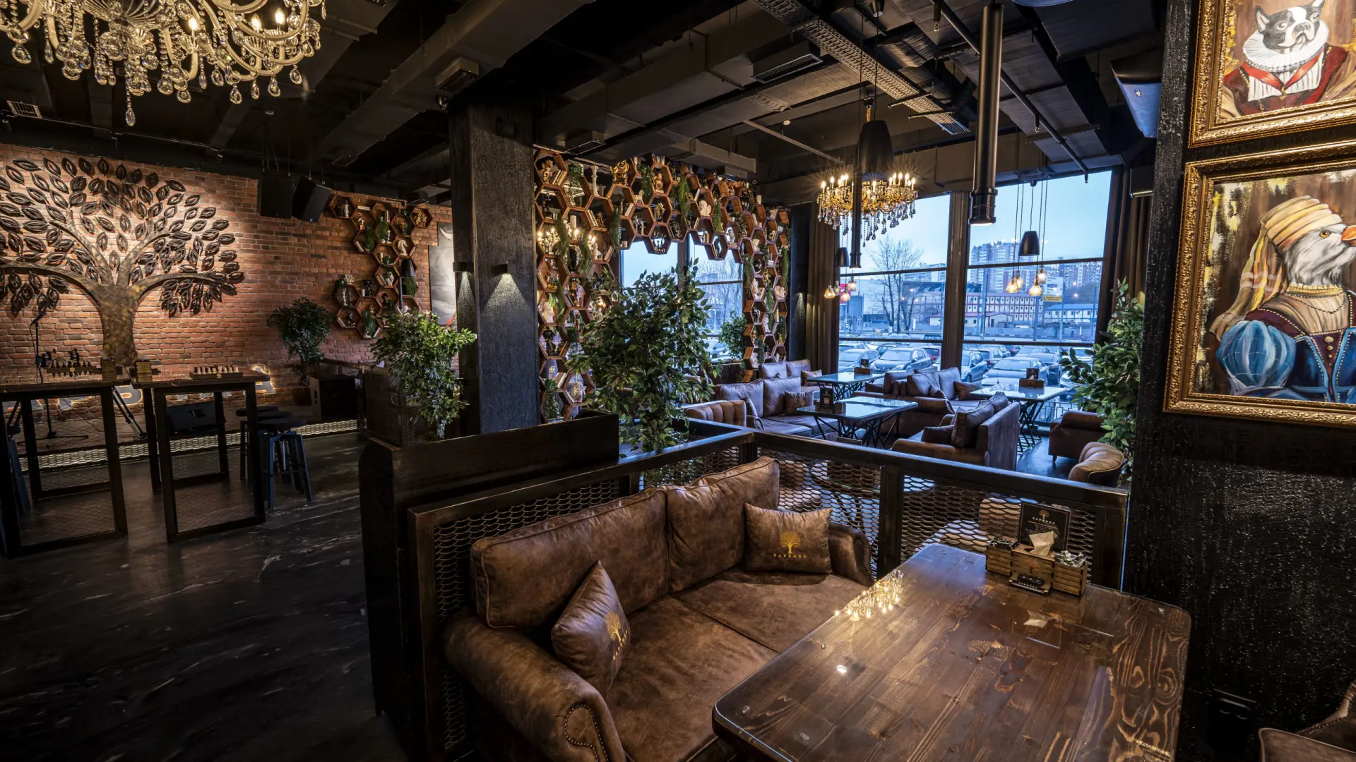 Оставить отзывОсновной зал заведения наполнен изысканной мебелью, предметами искусства и большим количеством света: панорамное остекление делает этот кальянный клуб особенным.